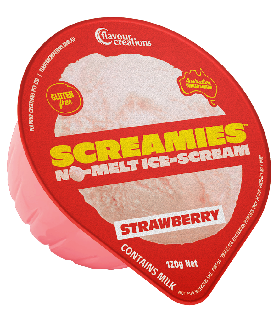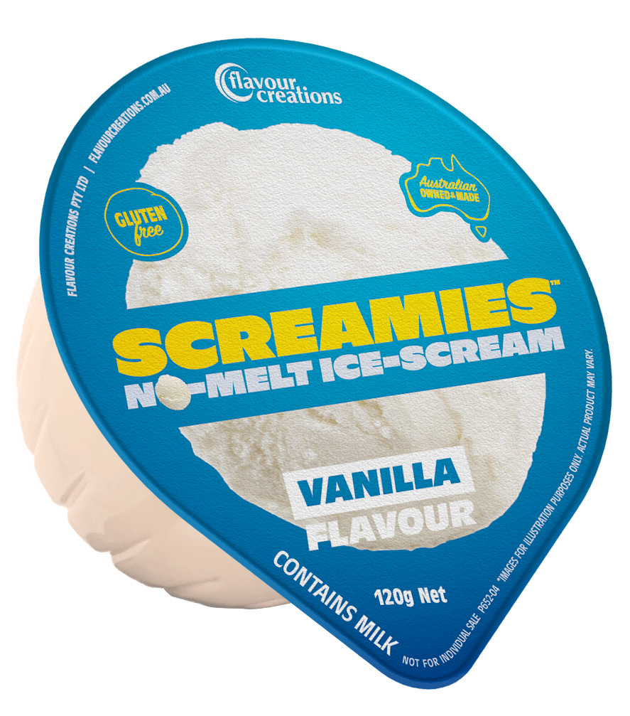 SCREAMIES No-Melt Ice-Scream is made with 100% Australian cream and no artificial colours and flavours for a real creamy ice cream taste.